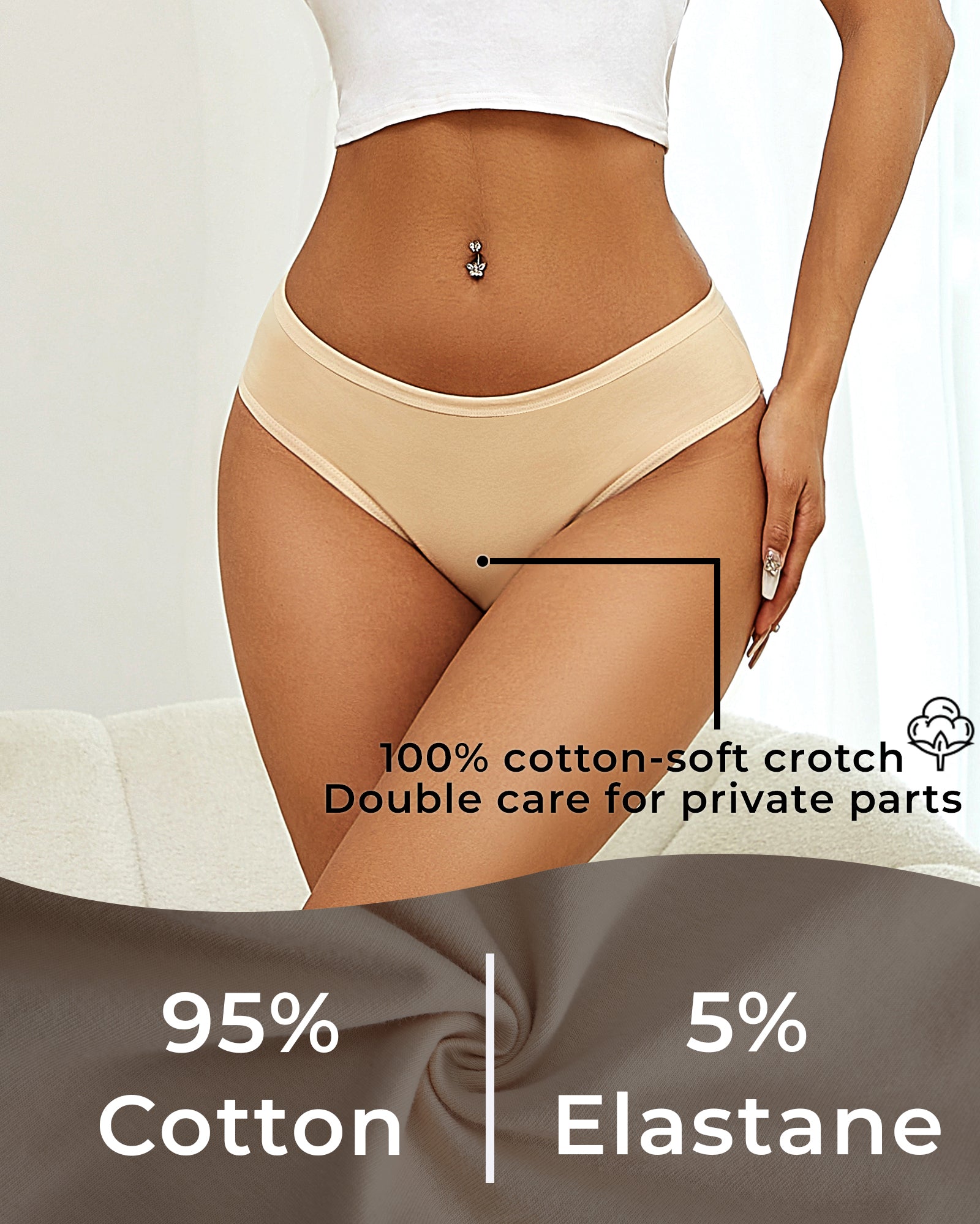 Discover the perfect blend of comfort and style with Finetoo Women's Cotton Underwear 5-Pack. Made from 95% cotton and 5% elastane, these breathable hipster panties feature a 100% cotton gusset lining for ultimate comfort and irritation-free wear. The low-rise cheeky design offers a smooth, flattering fit without visible panty lines, while the stretchy material ensures freedom of movement. Ideal for everyday wear, this versatile pack retains its shape and softness even after repeated washes. Upgrade your underwear collection with these durable, stylish, and comfortable bikini briefs.